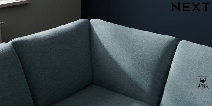 7.2.10 Buy Michigan II Large Corner Chaise - Left Hand Fine Chenille Easy Clean Mid Blue Slim Block - Light from the Next UK online shop Click here to use our accessible website
