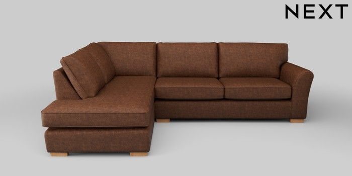 7.2.5 Buy Michigan II Large Corner Chaise - Left Hand Monza Faux Leather Easy Clean Chestnut Brown Slim Block - Light from the Next UK online shop Click here to use our accessible website