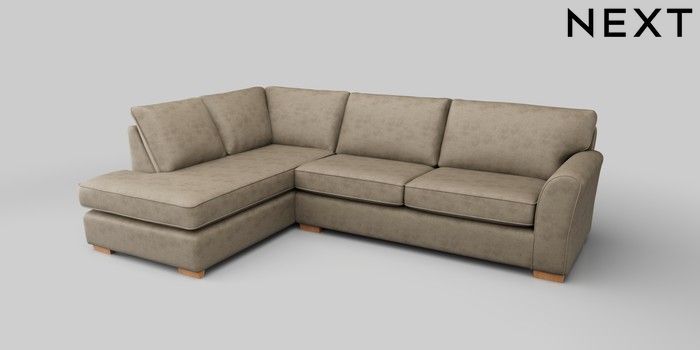 6.12.1 Buy Michigan II Large Corner Chaise - Left Hand Monza Faux Leather Easy Clean Mink Brown Slim Block - Light from the Next UK online shop Click here to use our accessible website