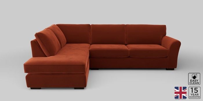 6.11.4 Buy Michigan II Large Corner Chaise - Left Hand Plush Velvet Easy Clean Ginger Orange Slim Block - Dark from the Next UK online shop Click here to use our accessible website