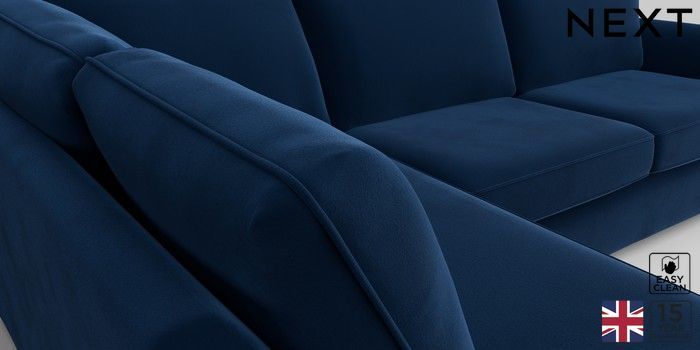 6.12.1 Buy Michigan II Large Corner Chaise - Left Hand Plush Velvet Easy Clean Navy Blue Slim Block - Mid from the Next UK online shop Click here to use our accessible website