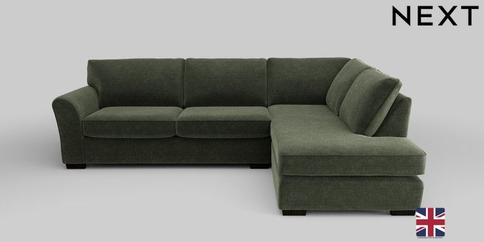 7.0.3 Buy Michigan II Large Corner Chaise - Right Hand Luxe Chenille Mid Green Slim Block - Dark from the Next UK online shop Click here to use our accessible website