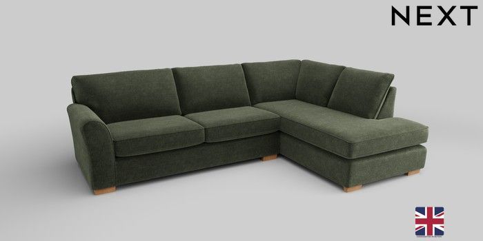 6.12.1 Buy Michigan II Large Corner Chaise - Right Hand Luxe Chenille Mid Green Slim Block - Light from the Next UK online shop Click here to use our accessible website