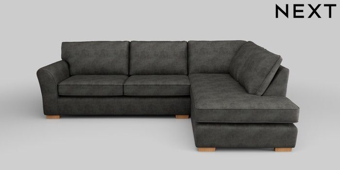 7.2.5 Buy Michigan II Large Corner Chaise - Right Hand Monza Faux Leather Easy Clean Dark Grey Slim Block - Light from the Next UK online shop Click here to use our accessible website