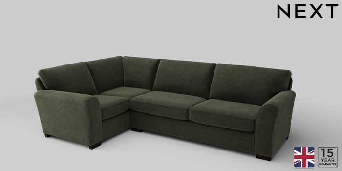 6.12.1 Buy Michigan II Large Corner Sofa - Left Hand Boucle Chenille Dark Moss Green Slim Block - Dark from the Next UK online shop Click here to use our accessible website