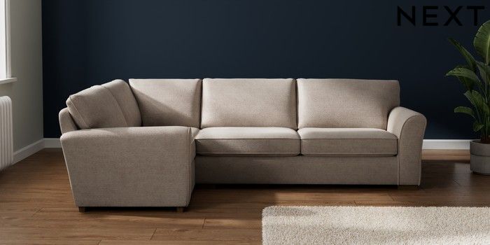 7.3.1 Buy Michigan II Large Corner Sofa - Left Hand Boucle Chenille Light Natural Slim Block - Mid from the Next UK online shop