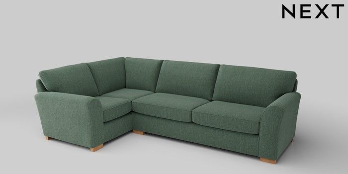 6.12.1 Buy Michigan II Large Corner Sofa - Left Hand Chunky Texture Mid Forest Green Slim Block - Light from the Next UK online shop Click here to use our accessible website