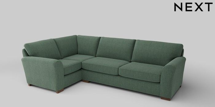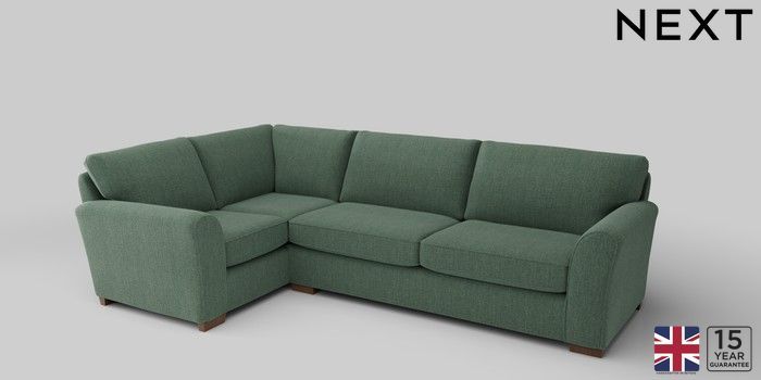 6.12.1 Buy Michigan II Large Corner Sofa - Left Hand Chunky Texture Mid Forest Green Slim Block - Mid from the Next UK online shop Click here to use our accessible website