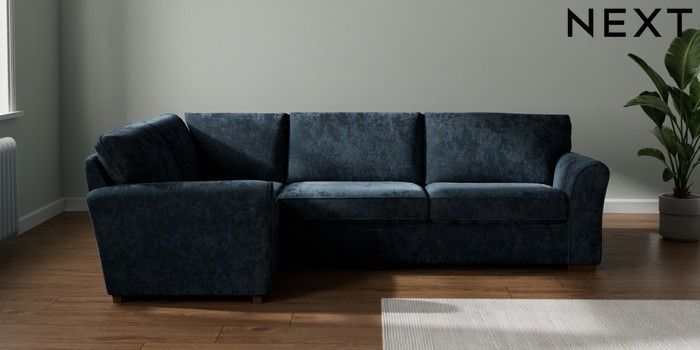 7.3.1 Buy Michigan II Large Corner Sofa - Left Hand Distressed Velour Midnight Blue Slim Block - Mid from the Next UK online shop
