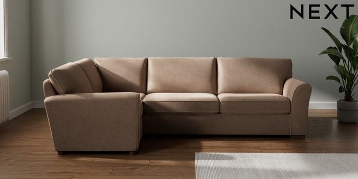 7.3.1 Buy Michigan II Large Corner Sofa - Left Hand Luxe Chenille Mid Natural Slim Block - Mid from the Next UK online shop