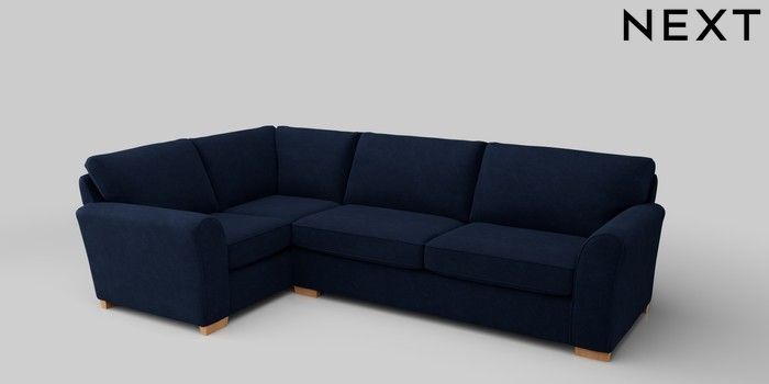 6.12.1 Buy Michigan II Large Corner Sofa - Left Hand Luxe Chenille Navy Blue Slim Block - Light from the Next UK online shop Click here to use our accessible website