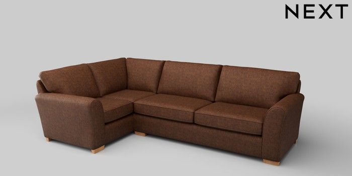 6.12.1 Buy Michigan II Large Corner Sofa - Left Hand Monza Faux Leather Easy Clean Chestnut Brown Slim Block - Light from the Next UK online shop Click here to use our accessible website