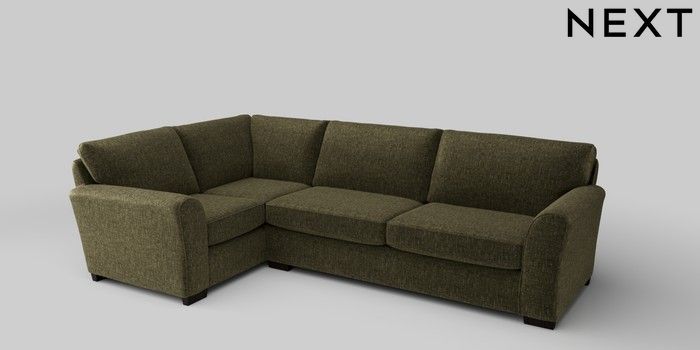 6.12.1 Buy Michigan II Large Corner Sofa - Left Hand Plush Chenille Moss Green Slim Block - Dark from the Next UK online shop Click here to use our accessible website