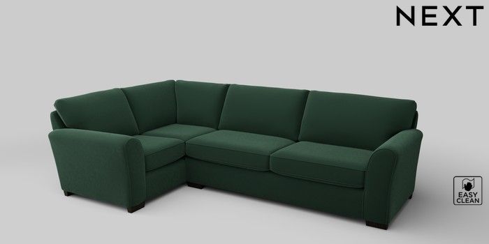 6.12.1 Buy Michigan II Large Corner Sofa - Left Hand Plush Velvet Easy Clean Bottle Green Slim Block - Dark from the Next UK online shop Click here to use our accessible website