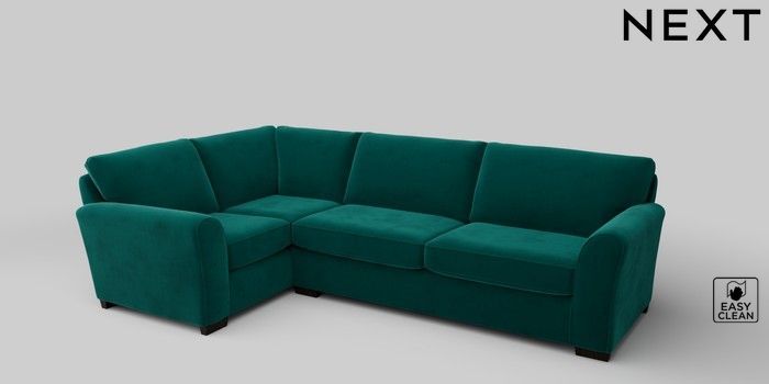 6.12.1 Buy Michigan II Large Corner Sofa - Left Hand Plush Velvet Easy Clean Juniper Green Slim Block - Dark from the Next UK online shop Click here to use our accessible website