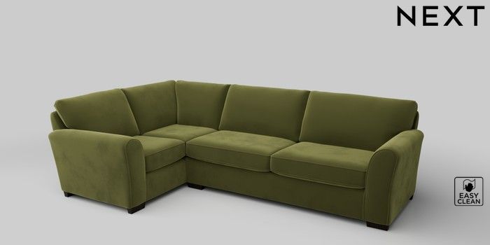 6.12.1 Buy Michigan II Large Corner Sofa - Left Hand Plush Velvet Easy Clean Mid Olive Green Slim Block - Dark from the Next UK online shop Click here to use our accessible website