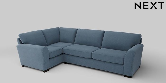 6.12.1 Buy Michigan II Large Corner Sofa - Left Hand Relaxed Linen Look Mid Blue Slim Block - Dark from the Next UK online shop Click here to use our accessible website