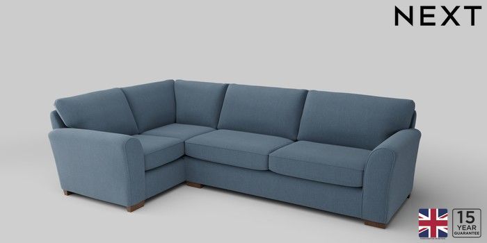 6.12.1 Buy Michigan II Large Corner Sofa - Left Hand Relaxed Linen Look Mid Blue Slim Block - Mid from the Next UK online shop Click here to use our accessible website