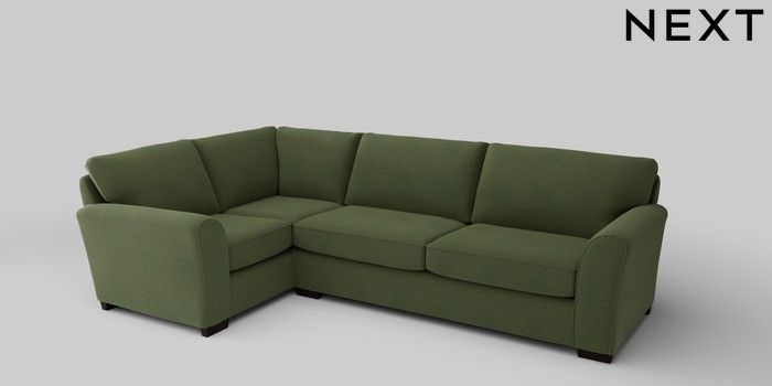 6.12.1 Buy Michigan II Large Corner Sofa - Left Hand Ripple Chenille Mid Moss Green Slim Block - Dark from the Next UK online shop Click here to use our accessible website