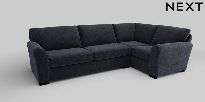 6.12.1 Buy Michigan II Large Corner Sofa - Right Hand Boucle Chenille Dark Slate Blue Slim Block - Dark from the Next UK online shop Click here to use our accessible website