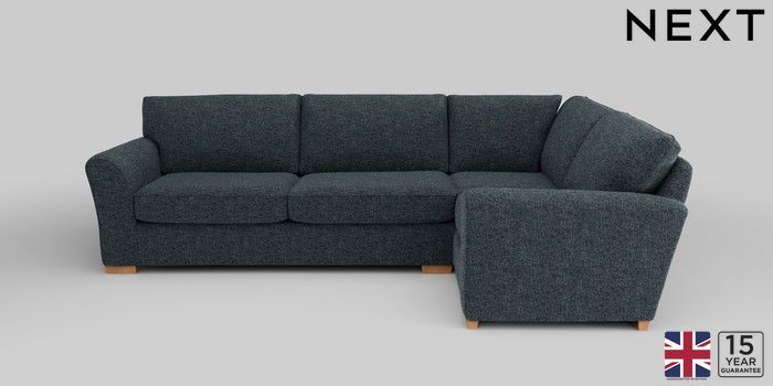 6.12.1 Buy Michigan II Large Corner Sofa - Right Hand Chunky Chenille Dark Navy Blue Slim Block - Light from the Next UK online shop Click here to use our accessible website