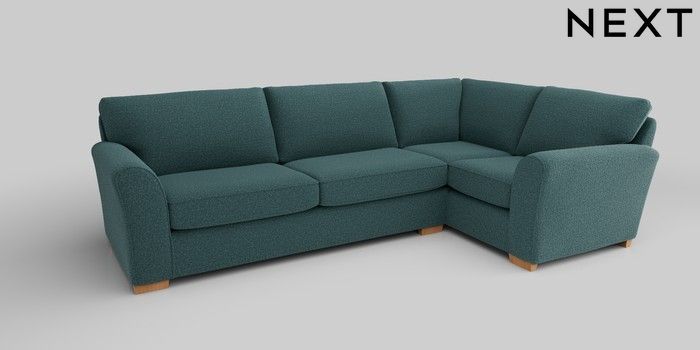 6.12.1 Buy Michigan II Large Corner Sofa - Right Hand Chunky Chenille Mid Teal Green Slim Block - Light from the Next UK online shop Click here to use our accessible website