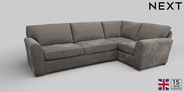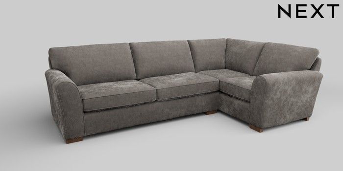 6.12.1 Buy Michigan II Large Corner Sofa - Right Hand Distressed Velour French Grey Slim Block - Mid from the Next UK online shop Click here to use our accessible website