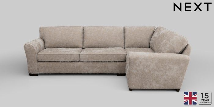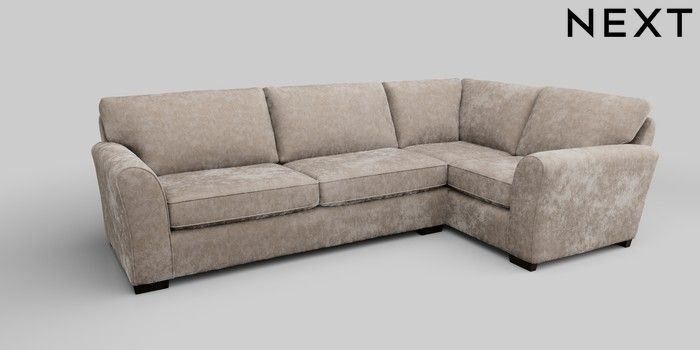 6.12.1 Buy Michigan II Large Corner Sofa - Right Hand Distressed Velour Mid Natural Slim Block - Dark from the Next UK online shop Click here to use our accessible website