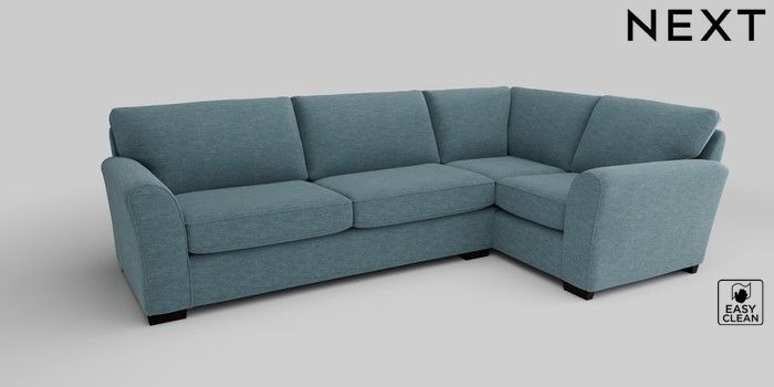 6.12.1 Buy Michigan II Large Corner Sofa - Right Hand Fine Chenille Easy Clean Mid Blue Slim Block - Dark from the Next UK online shop Click here to use our accessible website