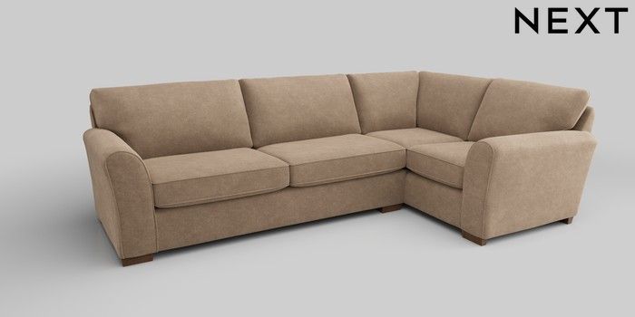 6.12.1 Buy Michigan II Large Corner Sofa - Right Hand Luxe Chenille Mid Camel Beige Slim Block - Mid from the Next UK online shop Click here to use our accessible website