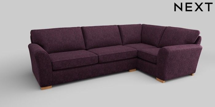 6.12.1 Buy Michigan II Large Corner Sofa - Right Hand Plush Chenille Dark Plum Purple Slim Block - Light from the Next UK online shop Click here to use our accessible website