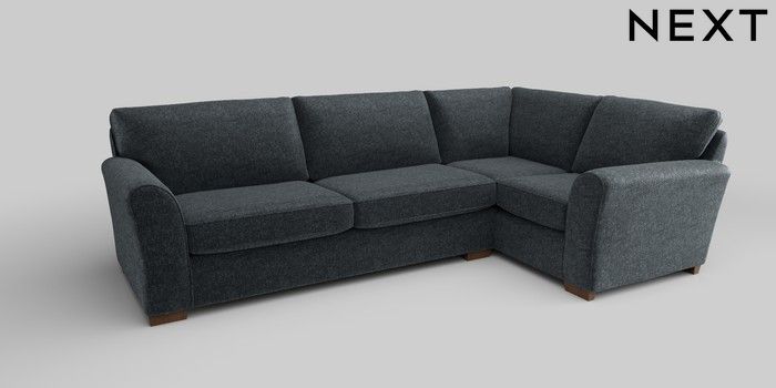 6.12.13 Buy Michigan II Large Corner Sofa - Right Hand Plush Chenille Slate Blue Slim Block - Mid from the Next UK online shop Click here to use our accessible website