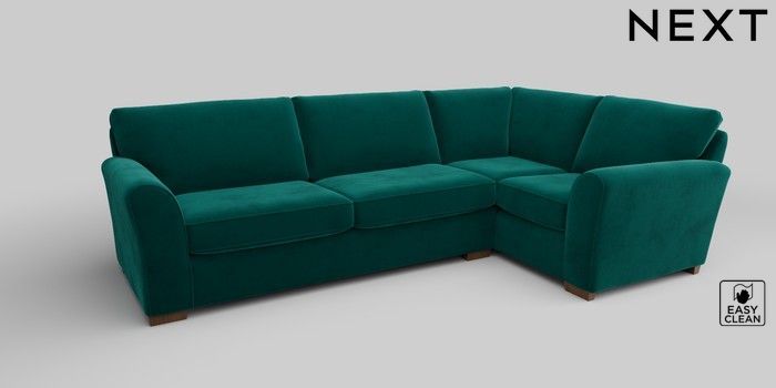 6.12.1 Buy Michigan II Large Corner Sofa - Right Hand Plush Velvet Easy Clean Juniper Green Slim Block - Mid from the Next UK online shop Click here to use our accessible website