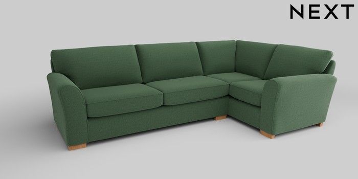 6.12.1 Buy Michigan II Large Corner Sofa - Right Hand Relaxed Linen Look Dark Green Slim Block - Light from the Next UK online shop Click here to use our accessible website
