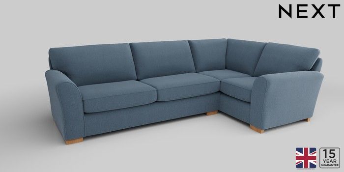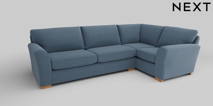 6.12.1 Buy Michigan II Large Corner Sofa - Right Hand Relaxed Linen Look Mid Blue Slim Block - Light from the Next UK online shop Click here to use our accessible website