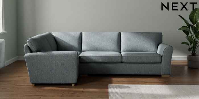 7.3.1 Buy Michigan II Large Corner Sofa - Left Hand Chunky Weave Mid Blue Slim Block - Light from the Next UK online shop Click here to use our accessible website