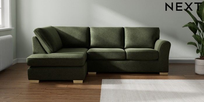 7.3.1 Buy Michigan II Medium Corner Chaise - Left Hand Boucle Chenille Dark Moss Green Slim Block - Light from the Next UK online shop