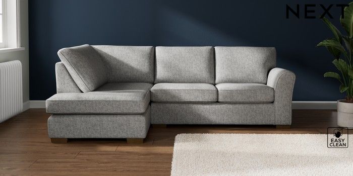 7.3.1 Buy Michigan II Medium Corner Chaise - Left Hand Chunky Boucle Easy Clean Light Grey Slim Block - Mid from the Next UK online shop