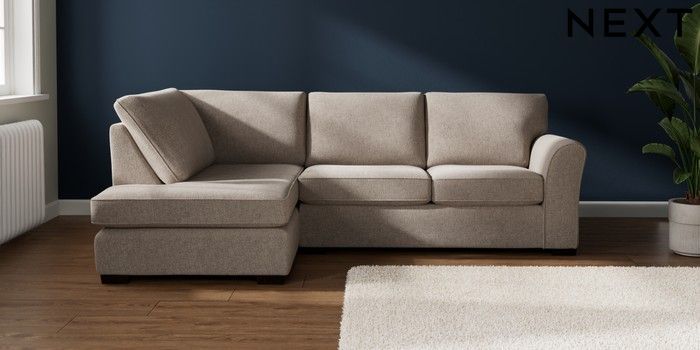 7.3.1 Buy Michigan II Medium Corner Chaise - Left Hand Chunky Chenille Light Dove Slim Block - Dark from the Next UK online shop