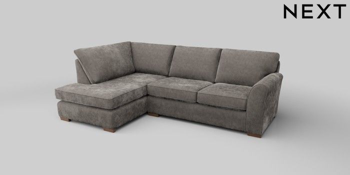 6.12.1 Buy Michigan II Medium Corner Chaise - Left Hand Distressed Velour French Grey Slim Block - Mid from the Next UK online shop Click here to use our accessible website