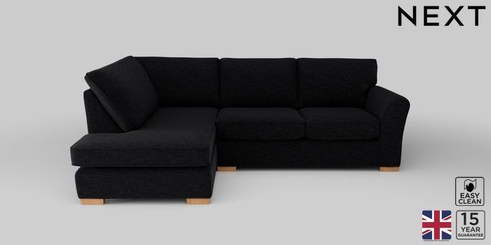 6.12.1 Buy Michigan II Medium Corner Chaise - Left Hand Fine Chenille Easy Clean Black Slim Block - Light from the Next UK online shop Click here to use our accessible website