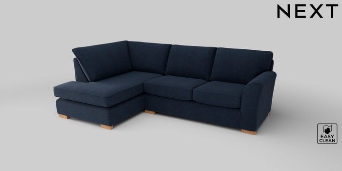6.12.1 Buy Michigan II Medium Corner Chaise - Left Hand Fine Chenille Easy Clean Dark Navy Blue Slim Block - Light from the Next UK online shop Click here to use our accessible website
