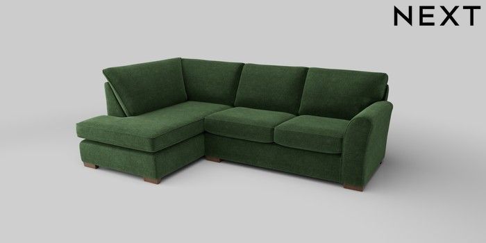 6.12.1 Buy Michigan II Medium Corner Chaise - Left Hand Luxe Chenille Dark Green Slim Block - Mid from the Next UK online shop Click here to use our accessible website
