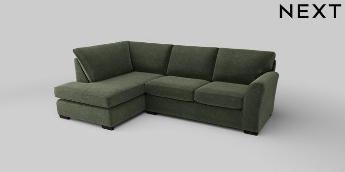 6.12.1 Buy Michigan II Medium Corner Chaise - Left Hand Luxe Chenille Mid Green Slim Block - Dark from the Next UK online shop Click here to use our accessible website