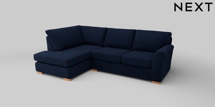 6.12.1 Buy Michigan II Medium Corner Chaise - Left Hand Luxe Chenille Navy Blue Slim Block - Light from the Next UK online shop Click here to use our accessible website