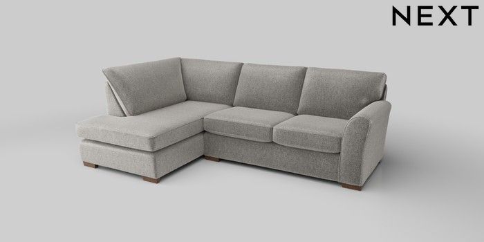 6.12.1 Buy Michigan II Medium Corner Chaise - Left Hand Plush Chenille Light Grey Slim Block - Mid from the Next UK online shop Click here to use our accessible website