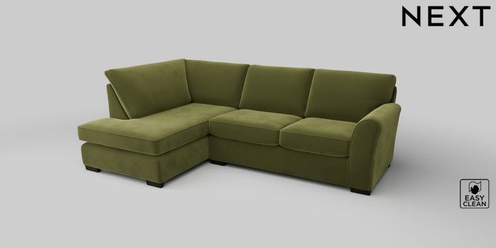 6.12.1 Buy Michigan II Medium Corner Chaise - Left Hand Plush Velvet Easy Clean Mid Olive Green Slim Block - Dark from the Next UK online shop Click here to use our accessible website
