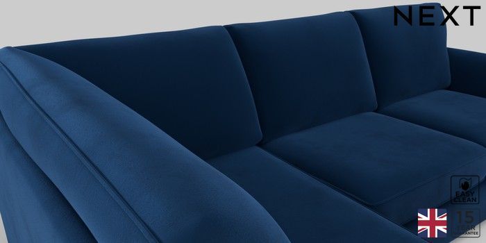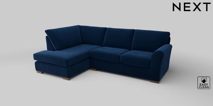 6.12.1 Buy Michigan II Medium Corner Chaise - Left Hand Plush Velvet Easy Clean Navy Blue Slim Block - Mid from the Next UK online shop Click here to use our accessible website