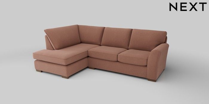 6.12.1 Buy Michigan II Medium Corner Chaise - Left Hand Relaxed Linen Look Light Rust Brown Slim Block - Mid from the Next UK online shop Click here to use our accessible website