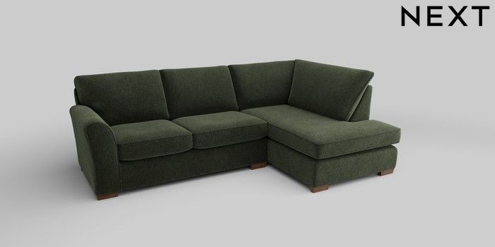 6.12.1 Buy Michigan II Medium Corner Chaise - Right Hand Boucle Chenille Dark Moss Green Slim Block - Mid from the Next UK online shop Click here to use our accessible website